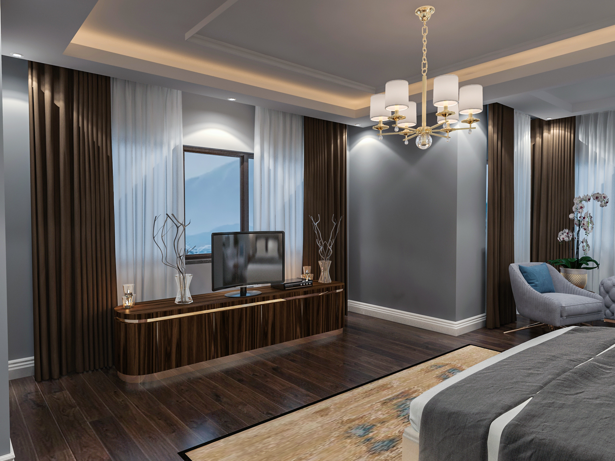 Modern interior design for a bedroom located in Sarıyer in Istanbul – Turkey.